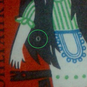Farbverschmierung (rot) rechts am Rand neben dem S von SCHNEEWITTCHEN
